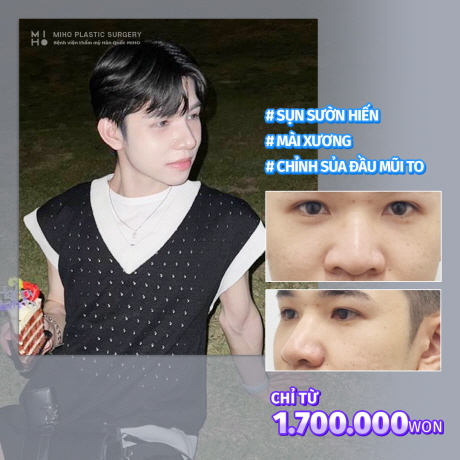 Nâng mũi nam MIHO Tạm biệt mũi củ tói, đầu mũi to bè Chào đón chiếc mũi siêu slayyyy Nhớ bấm theo dõi MIHO trên các nền tảng nhé: FACEBOOK: https://www.facebook.com/benhvienthammy.miho INSTA: https://www.instagram.com/mihops_vn/ TIKTOK: https://www.tiktok.com/@mihops.vietnam Tư vấn thẩm mỹ liên hệ Facebook: Bệnh viện thẩm mỹ Hàn Quốc MIHO Email : mihops.global@gmail.com Phone/Zalo : +82-(0)10-9059-5503 +82-(0)10-2767-5503 Kakao : mihops_vn /+82-(0)10-9059-5503 mihopsvn/ +82-(0)10-2767-5503 Web : http://vn.mihops.co.kr/ Whatsapp: 010-9059-5503